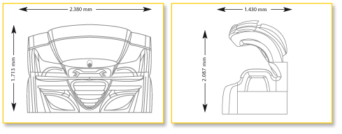 | Zamknięte 2.380mm x 1.430mm x 1.713 mm (długość x szerokość x wysokość) |